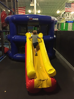 After the movie, we headed to Funtopia to let the older kids climb. Funtopia is a small rock gym for kids. They have different themed walls to climb, a giant slide, and a couple places to jump. Jonas just ran around and watched the kids. Danny was of course the most daring, but Kate and Kaia weren't too far behind. I think they were letting Danny go first so if something happened it wouldn't be them! Finally, no outing with Nichole would be complete if we didn't stop at Swig for a drink and a cookie.