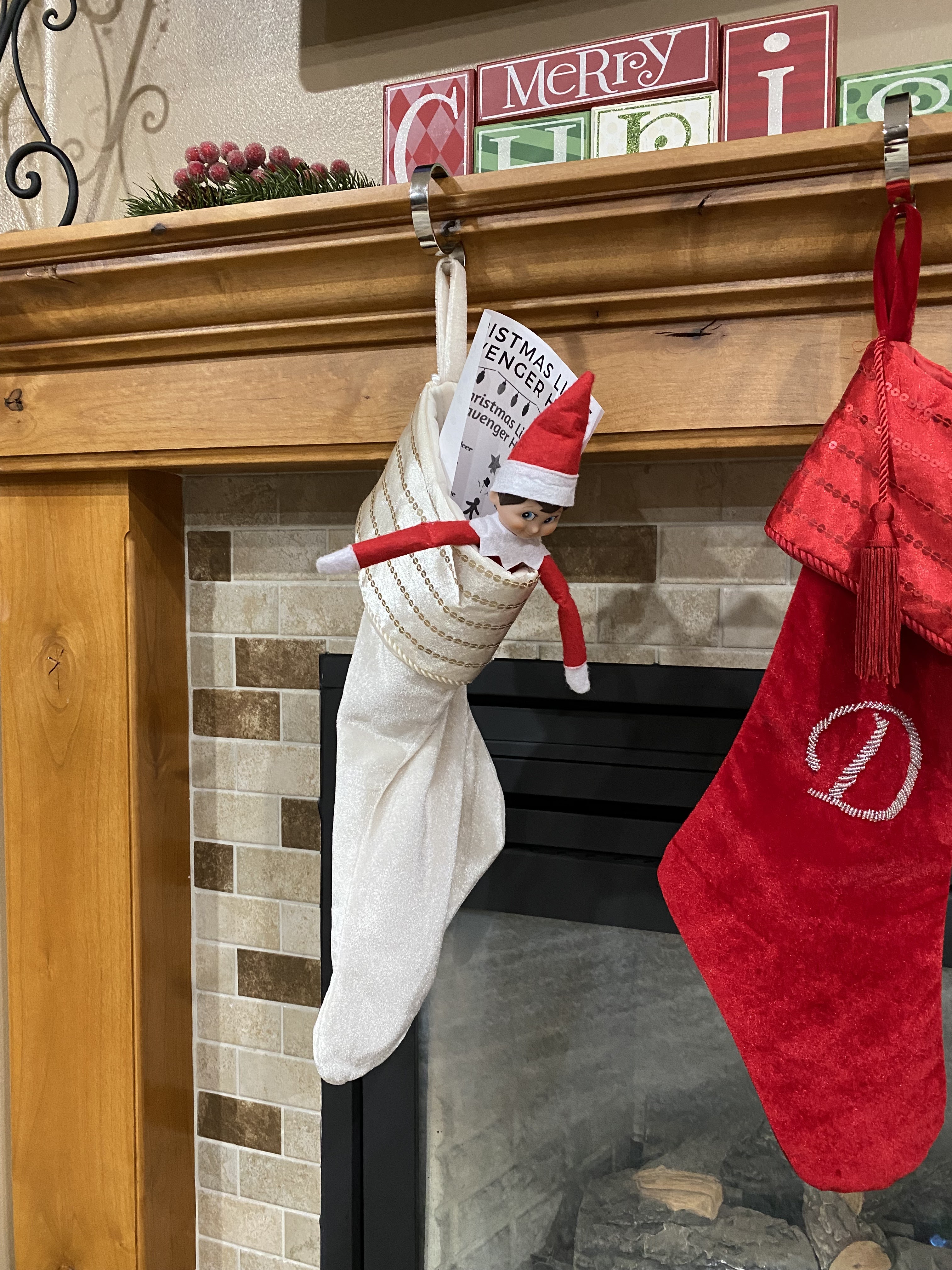Jingle, our little elf, has visited us every day since we got back from Tennessee. We have enjoyed various games and activities that he has brought/inspired or even little gifts. Today he brought Jonas a Christmas Light scavenger hunt. I think I was looking forward to this activity more than Jonas was. This is a fond childhood memory for me. I recall getting in my pajamas with my siblings, loading up in our little minivan, and spending several evenings throughout the holiday season driving around to see the lights. It waned as we got older and busier, but we would still make a point to go out to see the lights on Christmas Eve, especially at the temple. After we were done, we'd go back home to enjoy some donuts and hot chocolate (I would have apple cider instead). Tonight I got to share a little bit of that with Jonas. We didn't grab donuts, but we did drop by Crumbl for a few cookies to enjoy as we searched for the various items on the list Jingle brought us. We had a fun night!