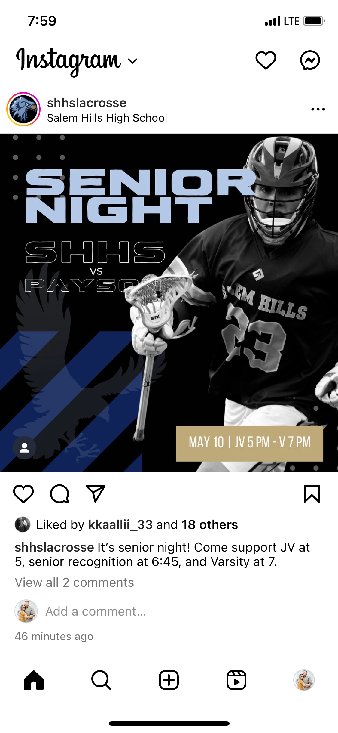 And that's a wrap! Even though Danny only played 2 years, this was definitely his high school sport (and Dallin is admittedly a little envious because he wished SHHS would have had a lacrosse program when he was in high school). It has been so fun to watch Danny play (although this season was FREEZING!! I don't think I'll miss the spring sports next year). As parents, we could tell, just from his walk, what mood he was in...and who was going to get it! He played defensive midfield, and he was a force to be reckoned with. The game is fast paced and extremely engaging. Before his last home game, they recognized all 8 of the senior players on the team. It was a bittersweet moment. We have gone through a few "lasts" recently. They always come with mixed emotions, but the emotion that prevailed that night was excitement! They won their game 5-3 against our cross town rivals, Payson HS Lions. Overall, they've had a bit of a rough season, but they always fought hard. Here are just a few pictures from the season. Way to go Skyhawks!