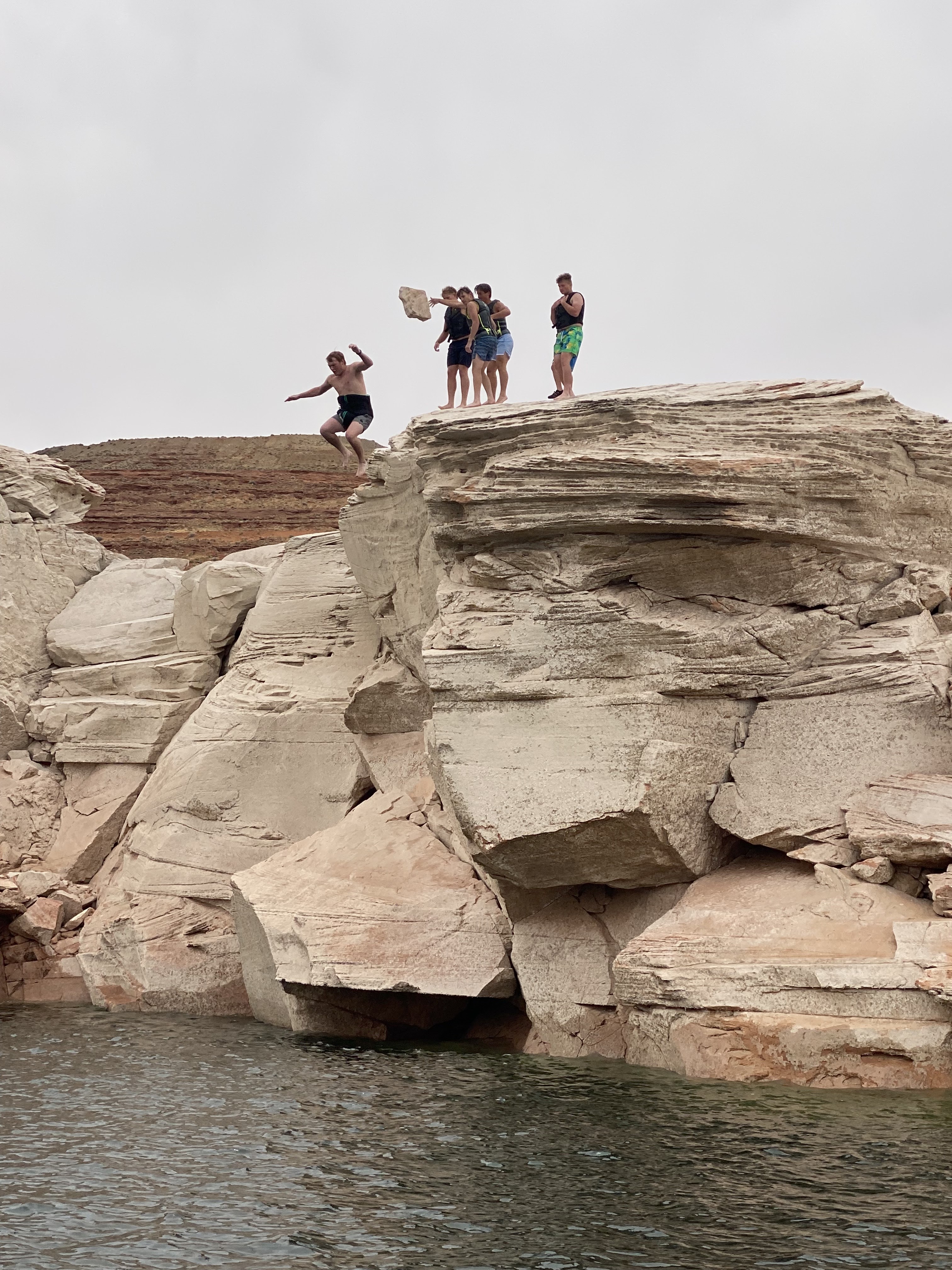 The next morning, we (Jeff, Dallin, Danny, Jonas, and I) headed to Lake Powell with five of Danny's friends. This was the trip Danny most wanted to take before he left on his mission. I had my concerns about that many young adult males on the boat, but they all did great! Jeff and I were super proud of Jonas too! This was the first boating trip where he was fearless in trying everything. He was determined to master surfing, and he did. He can get up and stay up on his own. Sure, he doesn't know how to carve or do any tricks, but that will come with time. He was also willing to go kneeboarding and enjoyed tubing too. All of the boys enjoyed jumping off the cliffs. We spent half of the day Thursday and all of the days Friday and Saturday on the water. Thursday and Friday had some afternoon storms. In fact, on Friday, we got caught in quite a little squall. The wind whipped up the waves and the rain was pelting us so hard that we had to seek shelter in a little cove before we could make it the rest of the way back to the marina. It was a little scary and a little uncomfortable, but we survived. To be honest, the cloudy weather was actually heaven sent because Friday morning, Jeff and I found ourselves in an urgent car. Jeff had some skin irritation that turns out to be shingles (or at least some form of viral infection) and the sun would make it worse. Poor Jeff! I think he might be done with Lake Powell. This is two years in a row of unfortunate events. However, Saturday was a perfectly sunny day to end on, and I think the trip was success for all the boys. (Oh...and I ran into Shannon! It was fun to bump into a friend on vacation.) We came home on Sunday, June 18th, which was Father's Day. We got home in just enough time to host a simple family dinner for Jeff. (His face was too swollen to get any pictures.) I am so grateful for the father (and husband) he is. He is my best friend and the most incredibly present, invested, generous father our kids could ask for.